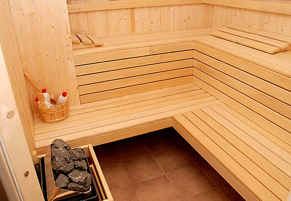 El baño sauna es de calor seco. Como el ambiente es menos húmedo que el del baño turco, el sudor se seca en la piel y genera una sensación más agradable. Se trata de una sala cubierta en madera llena de gradas para poder descansar – cuanto más arriba se siente, más calor va a sentir -.En este caso, la sensación térmica proviene de piedras volcánicas a altas temperaturas. Los mismos bañistas se encargan de humectar el lugar echando agua sobre las piedras. Al evaporarse, generan una sensación de aumento de la temperatura. Se trata del Löily que, para los pueblos escandinavos no es más que el espíritu del sauna.