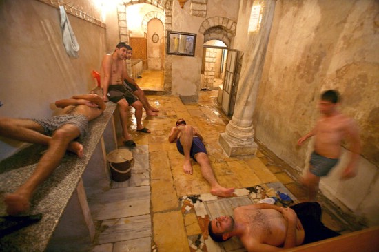 Los baños de vapor eran una costumbre muy difundida entre turcos y romanos. Los últimos, tenían como lugar de encuentro las termas donde entre masajes y vapores intercambiaban opiniones sobre política y cualquier tema del día. Las más famosas fueron las de Caracalla. Dotadas de una gran pileta con capacidad de hasta 2000 personas. También tenían gimnasios, bibliotecas y salas de masaje, donde recibían sesiones profesionales untando el cuerpo con una mezcla de arena, aceite y polvo.
