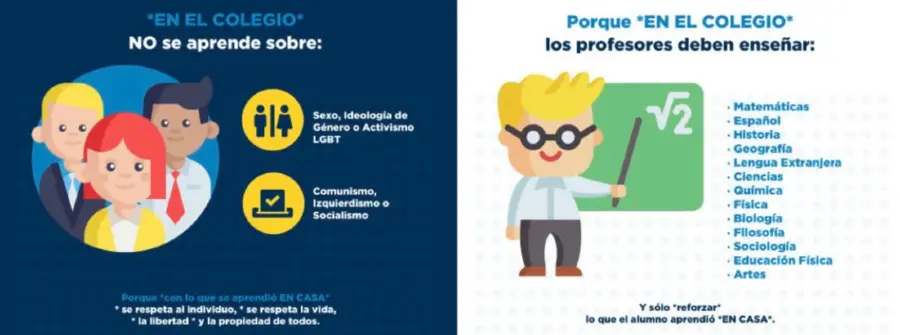 Luego de rechazar todo ese tipo de conocimientos o temas en las clases de la institución, la infografía cerraba con la frase “Porque en el Colegio los profesores deben enseñar” y desglosaban las clases básicas como matemáticas, español, historia, geografía, lengua extranjera y las tradicionales materias escolares.