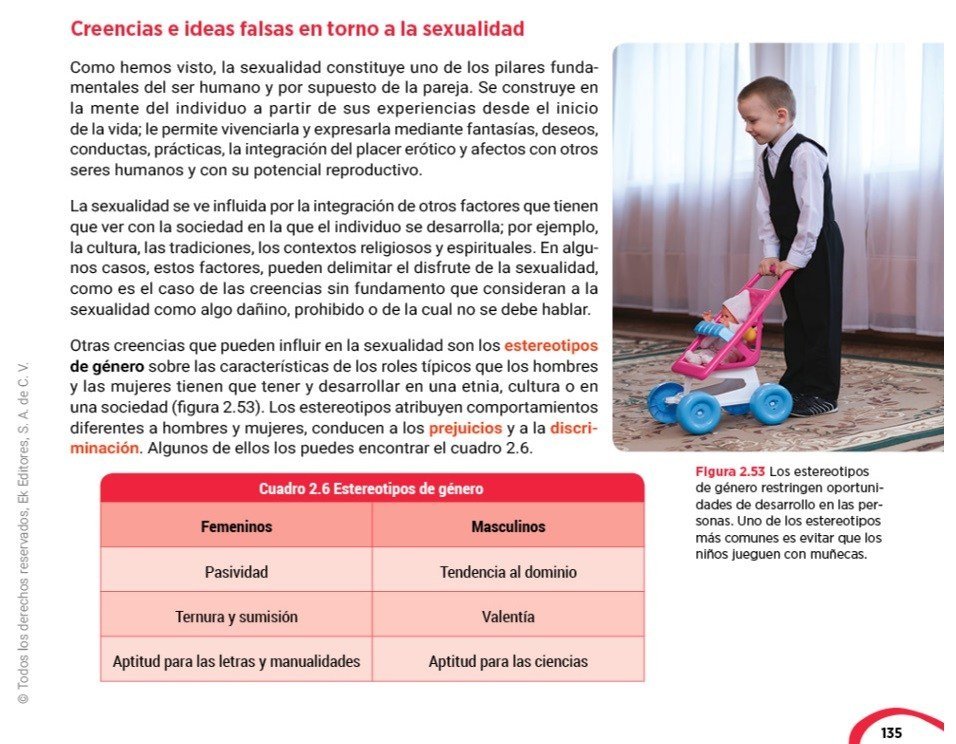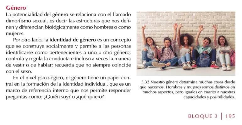 “El comportamiento de hombres y mujeres, la forma de relacionarse con personas del sexo opuesto y del propio, la vestimenta y otras formas en que se expresa lo femenino y lo masculino en cada cultura son manifestaciones del género”, explica uno de los textos.