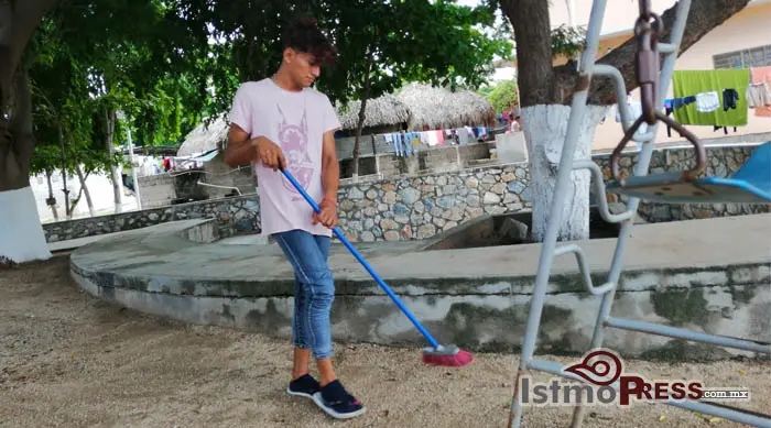 Mía, lleva tres meses viviendo en el albergue Hermanos en el Camino, y desde hace un mes y medio se integró al programa “Emergencia social”; a las 6:00 de la mañana se levanta, toma sus utensilios como escoba, pala y carretilla y se va junto con otros migrantes al parque “Hidalgo” de ciudad Ixtepec y también acude a las vías del ferrocarril donde realizan limpieza de maleza y recogen basura.