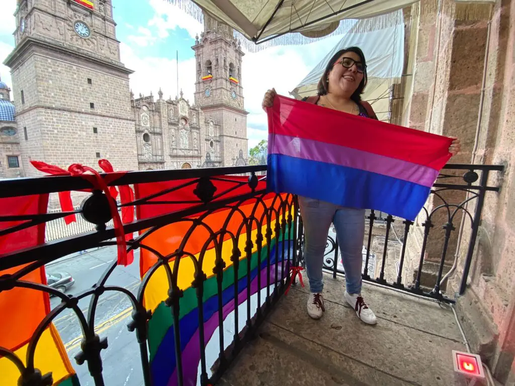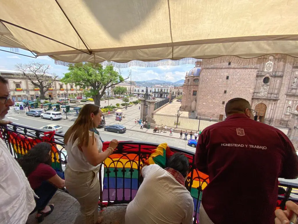 Como parte de las acciones para concientizar y erradicar la violencia en contra de la comunidad LGBTTIQ+ colgaron banderas arcoíris en los balcones de Palacio de Gobierno en la ciudad de Morelia.