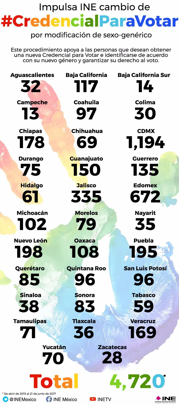 El Instituto Nacional Electoral, en su obligación de proteger y garantizar el ejercicio pleno de los derechos políticos a la ciudadanía, estableció desde abril de 2015 los procedimientos que facilitan actualizar en la Credencial para Votar los datos de las personas que han decidido cambiar de sexo.