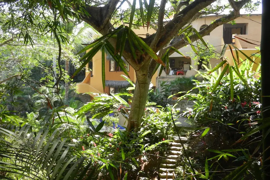 La casa está ubicada en el centro de una pequeña colina en un tranquilo vecindario residencial. Una caminata fácil de tres minutos lo lleva a la plaza, y otros dos minutos lo encuentran en la playa. No es necesario un automóvil para disfrutar de todo lo que Sayulita tiene para ofrecer; sin embargo, hay estacionamiento seguro para dos autos pequeños. Para el disfrute tranquilo de la casa y los jardines, no se permiten niños menores de 10 años.