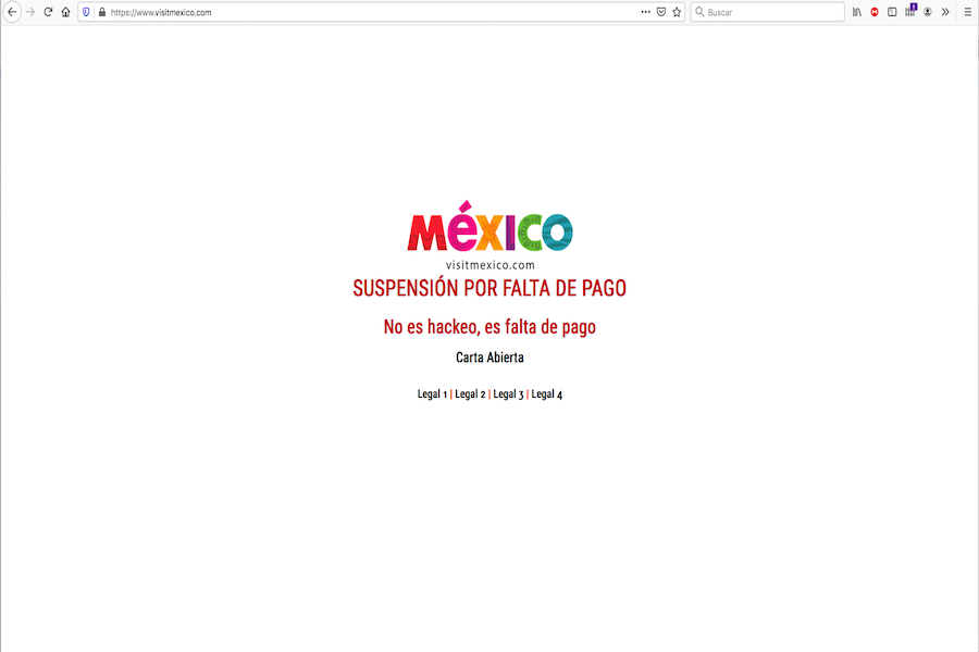 Ante esta confusión, si fue por falta de pago o no, o fue hackeada y demás, Carlos González, director de VisitMexico, fue el que dio la cara a los medios, argumentando que no existía deuda alguna, y de hecho manifestó que lo que ellos buscaban era una conciliación con la empresa TECNOCEN.COM, quien prestaba sus servicios a Braintivity en infraestructura de la nube- servidores Amazon, accesibilidad y administración.