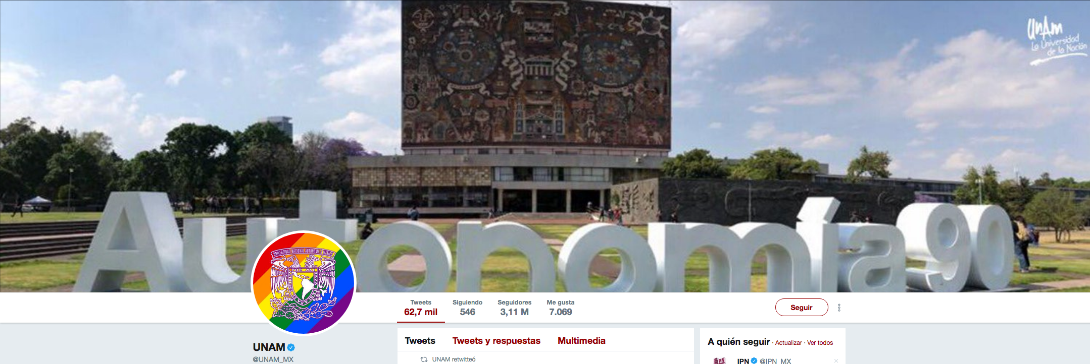 Las cuentas en redes sociales de la UNAM muestran el escudo con los colores de la bandera LGBTI
