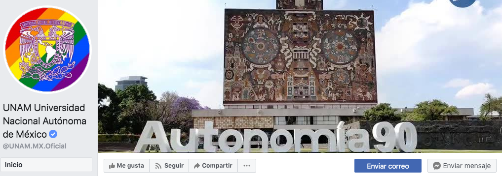 La Universidad Nacional Autónoma de México se unió al mes del Orgullo LGBTI; las cuentas en redes sociales de la UNAM muestran el escudo con los colores de la bandera gay.