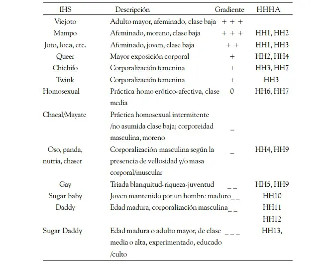 Entre ellas, señalaron que el viejoto es la menos valorada, ya que alude a varones femeninos y de edad avanzada humillados por no poseer el poder adquisitivo o la corporalidad estipulada por los modelos locales de masculinidad.