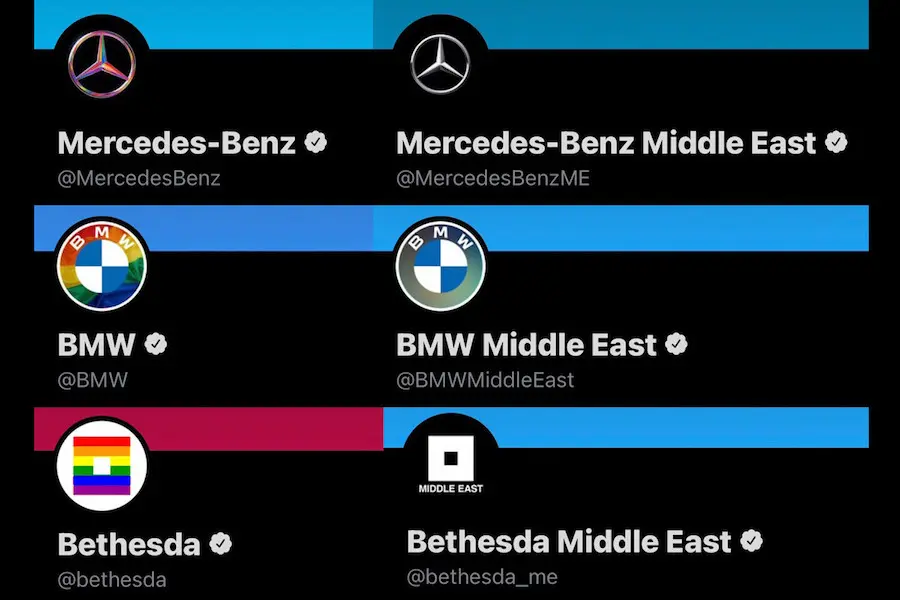 El contraste. Circula desde hace unos días por las redes sociales. Algunos usuarios han observado cierta disonancia entre las cuentas europeas y americanas de ciertas multinacionales y sus perfiles en otras regiones del mundo, en especial Oriente Medio (pero no sólo: también Rusia o países de Extremo Oriente. En las primeras, marcas como YouTube, P&G, Mercedes o Microsoft no tienen reparo en vestirse de «arcoiris» para celebrar el respeto, la diversidad, etcétera. En las segundas, sin embargo, su imagen sigue igual. No hay bandera LGBT. No hay guiños al Orgullo.