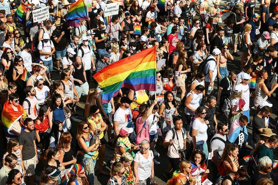 Miles de húngaros se unieron a la marcha anual del Orgullo de Budapest este sábado para apoyar a las personas LGBTQ y protestar contra una ley que limita la enseñanza sobre la homosexualidad y las cuestiones transgénero en las escuelas.