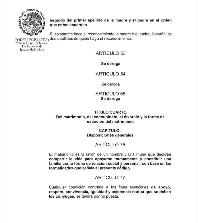 La fracción legislativa de Morena en el estado de Veracruz, presentó una nueva versión de reforma al código civil, que fue declarado inconstitucional desde el año 2015. En la redacción de la propuesta se refleja la presión política de la iglesia, pues en esta ocasión se define al matrimonio como la unión de un hombre y una mujer, cerrando la posibilidad a la unión igualitaria.
