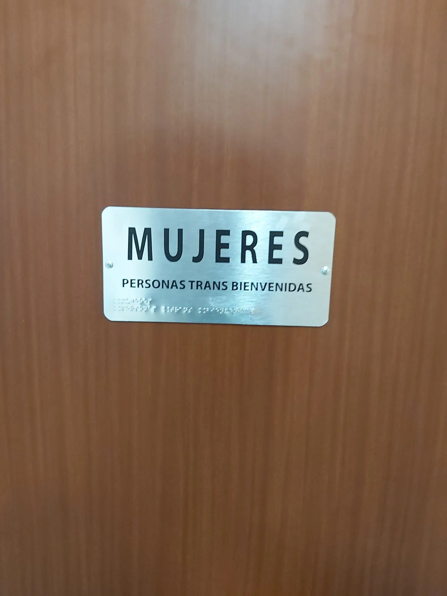 El mismo mensaje de inclusión también se encuentra grabado en placa metálica en braille.