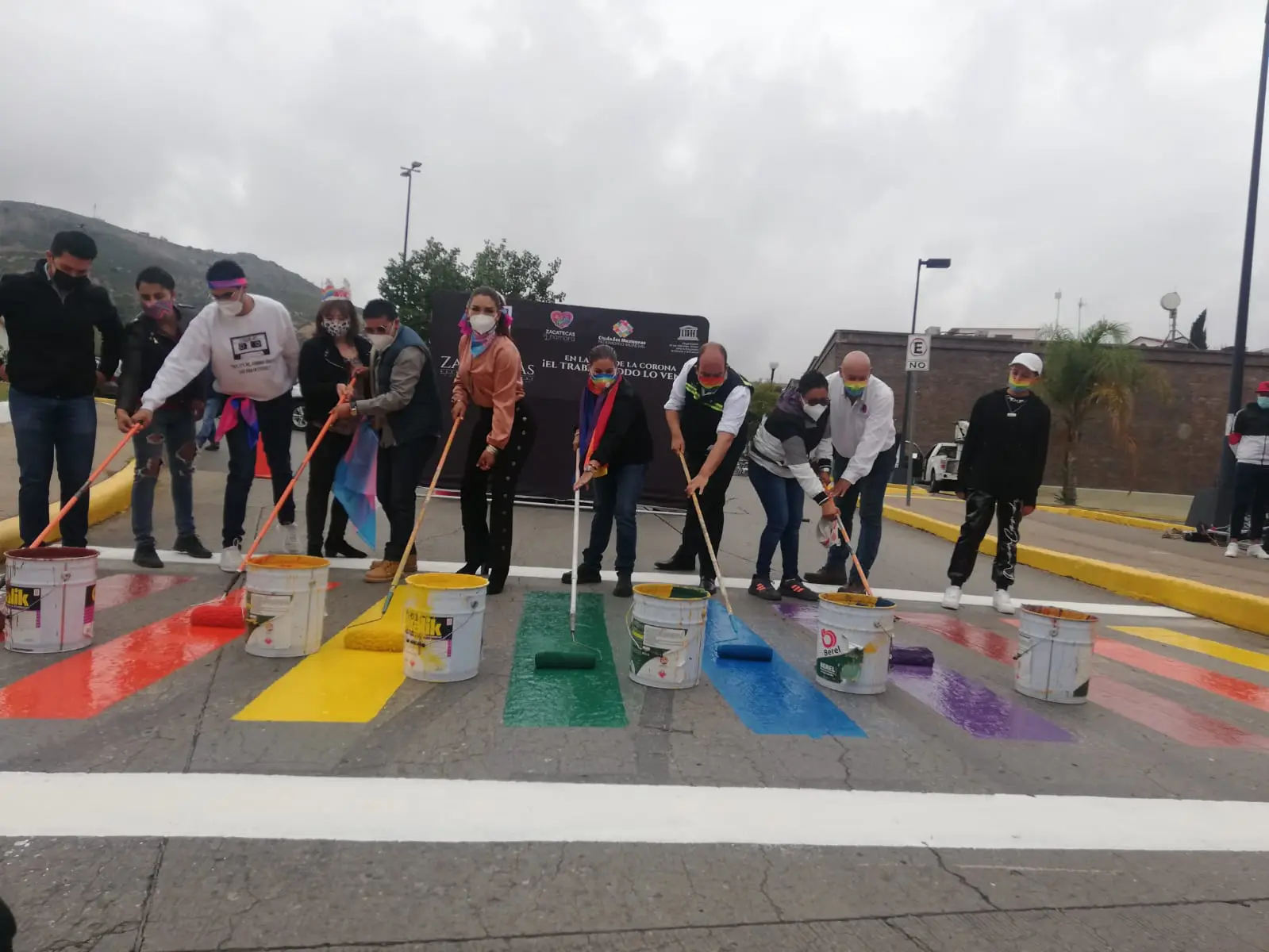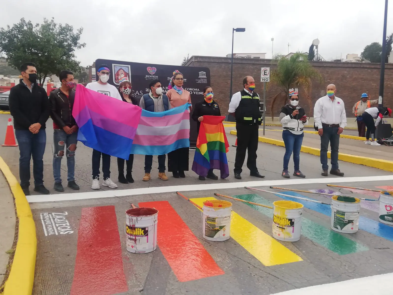 De la mano del Comité Ciudadano de la Diversidad Sexual y colectivos LGBT, el ayuntamiento de Zacatecas realizó, por tercer año consecutivo, la pinta del paso peatonal con los colores de la bandera LGBT, para culminar las actividades conmemorativas del Mes del Orgullo LGBT.