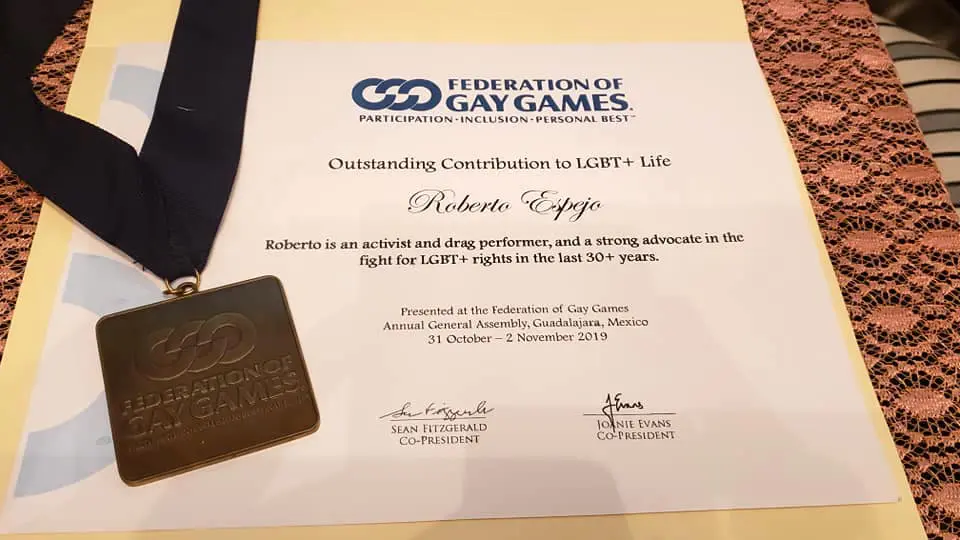 Dicho reconocimiento hace referencia a la excepcional contribución de Roberto Espejo a la vida LGBT+.